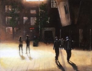 “An interest in art means you see things you might not otherwise have noticed. Standing in a queue outside The Van Gogh Museum I noticed this interesting lighting effect so did a quick pencil sketch. I painted the picture when I got home in Stafford thinking that the unusual lighting, kind of, matched the strange days we were living through.”