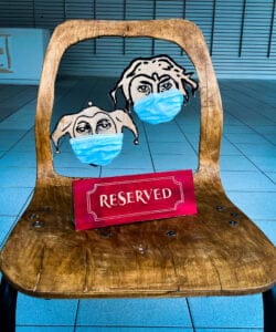 Our chair was designed to look old and abandoned. The seat was reserved but because of COVID-19 that chance was stolen away.