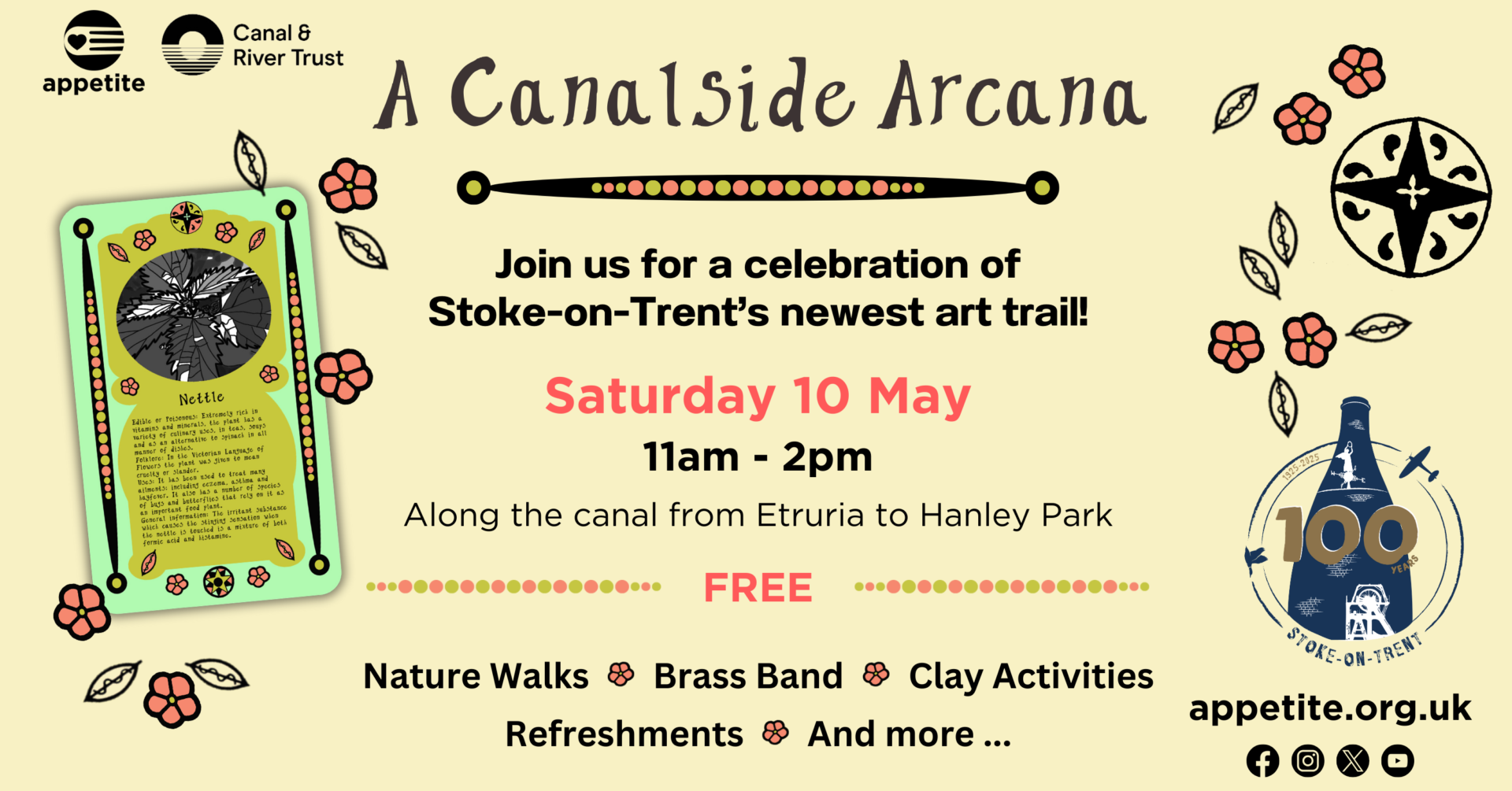 Appetite and Canal & River Trust asked artist Anna Francis to create a permanent work of art along the canal based on how the community in Etruria feel about where they live. For months the community has been giving us their thoughts and getting involved and now we’re thrilled to reveal the final piece: A Canalside Arcana.