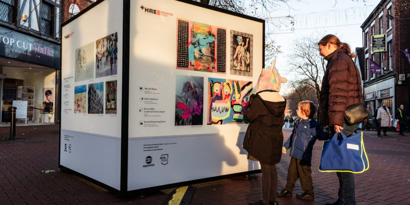 Appetite and ArtsKeele are really excited to be bringing The Three Counties Cubes to Trentham Gardens, running from Saturday 30 January to Monday 5 April. The exhibition will be in the Amphitheatre area of the Gardens next to the lake. Trentham Gardens are currently operating at a limited capacity, with access to the cubes only available via pre-booked tickets for the gardens.