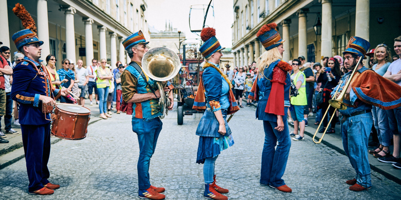 Roaming, brass heavy, anarchic, musical mayhem… five musicians arrive dressed in punk marching-band attire, with the intensity of the inevitable end of the world burning through their eyes.