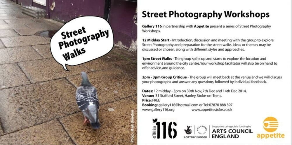 Gallery 116 in partnership with Appetite present a series of Street Photography Workshops.