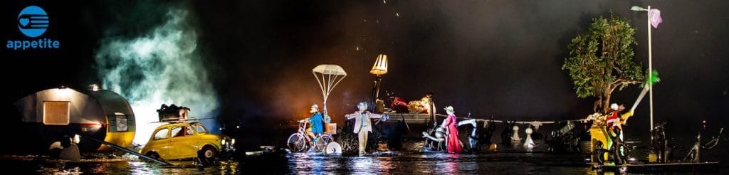 Appetite presents Water Fools by ilotopie an outstanding outdoor show performed entirely on the lake at Central Forest Park. A spectacle like no other, this show sees performers walking on water, floating cars, bikes, and beds, astonishing original music and a frenzy of fireworks all combining to create a dreamlike and visually stunning performance which, for this very special evening, transforms a lake into a stage.