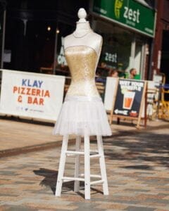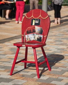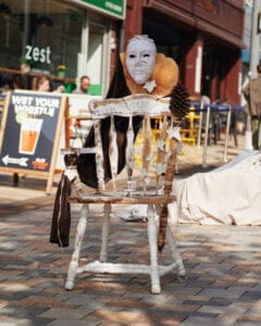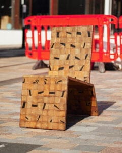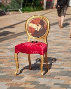 We are so excited to be exhibiting Every Other Seat in Newcastle-under-Lyme. The seats featured are reimagined by artists and local students, inspired by the impact of the Covid-19 pandemic on artists and performers. Below are the details of the different seats, which are currently featured in the ex-Dorothy Perkins window at the Roebuck Centre, Newcastle-under-Lyme from Tues 16 February to Sat 24 April.