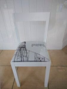The images on the chair are an accumulation of shots taken from drama rehearsals at Staffs University whilst under taking her masters and shots from Stoke On Trent Repertory Theatre to which she was allowed access (following the latest government guidelines).